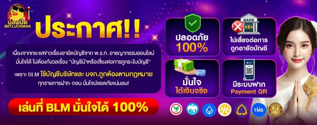 Betluckmak88 ใช้ระบบฝากถอนออโต้รุ่นใหม่ล่าสุดที่ทั้งเร็วและปลอดภัย รองรับทุกธนาคาร รวมถึงการใช้งานผ่าน True Wallet ทำธุรกรรมได้ภายใน 10 วินาทีโดยไม่ต้องแจ้งแอดมิน ทุกข้อมูลของสมาชิกได้รับการปกป้องด้วยระบบเข้ารหัส SSL 256-bit ที่มีมาตรฐานเดียวกับธนาคารระดับโลก เพื่อให้คุณสามารถเล่นได้อย่างมั่นใจ ไม่ต้องกังวลเรื่องความปลอดภัยของข้อมูลหรือยอดเงิน